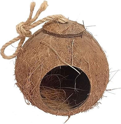 This coconut house is ideal for small birds, hamsters, mice, reptiles, and other small animals that enjoy enclosed spaces. Lightweight yet durable, it is easy to install and remove for cleaning or repositioning.