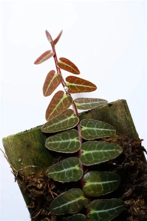 This plant prefers warm temperatures, high humidity, and consistent moisture in a well-draining substrate. Water regularly to keep the medium lightly moist but avoid waterlogging. Good airflow helps prevent rot, especially in enclosed environments like cabinets or terrariums.