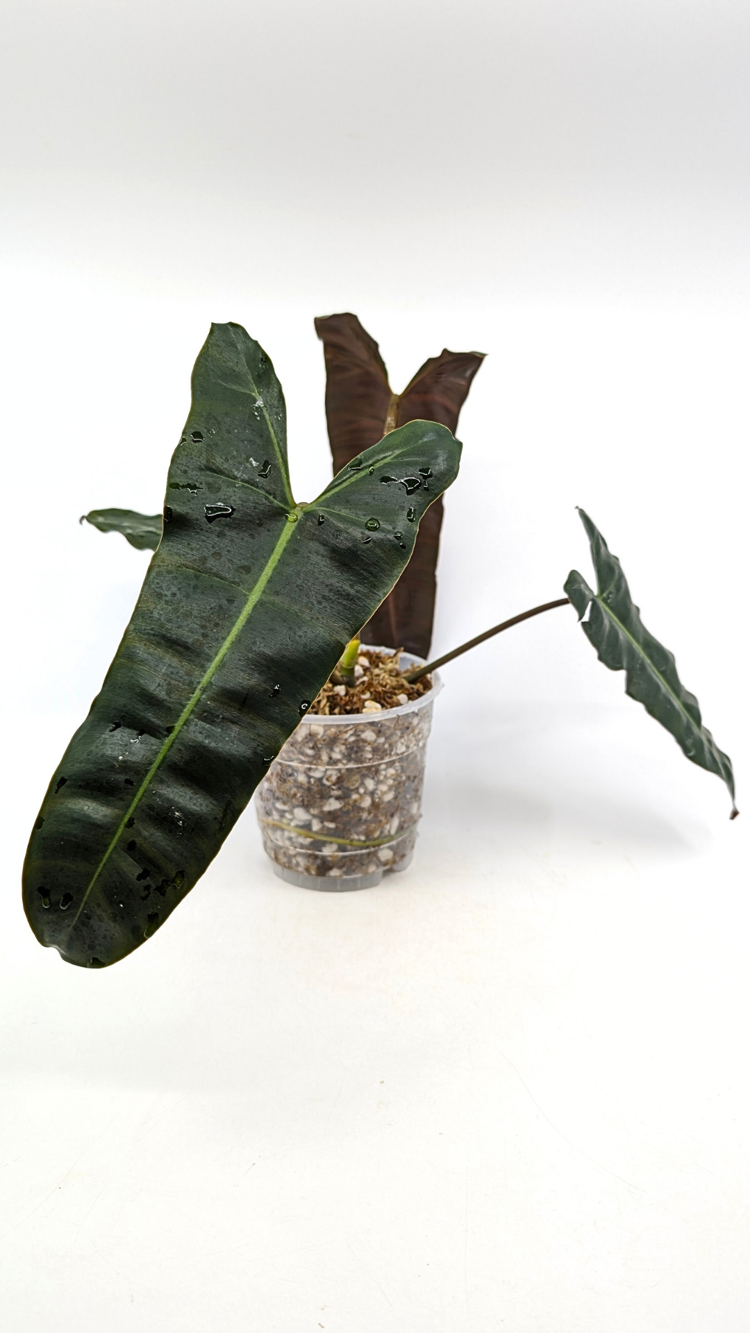 This species prefers warm temperatures, moderate to high humidity, and good airflow. It should be grown in a well-draining aroid mix that retains moisture without becoming waterlogged. Water when the top layer of substrate begins to dry and avoid prolonged saturation to protect the roots.